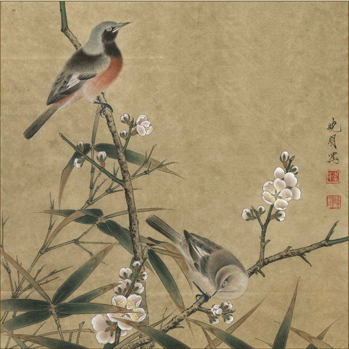 The bottom draft of the artificial stroke-the plum bamboo peacock