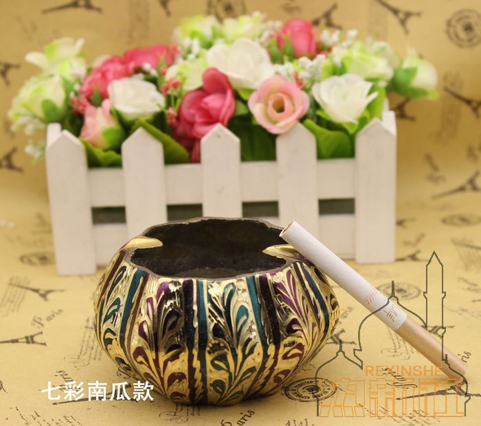 Pure Artisanal Finishings Bronze Ware Pumpkin Type Smoking Ash Trays Home Furnishing Art Styling Metal Cigarette Ash Tray Hem
