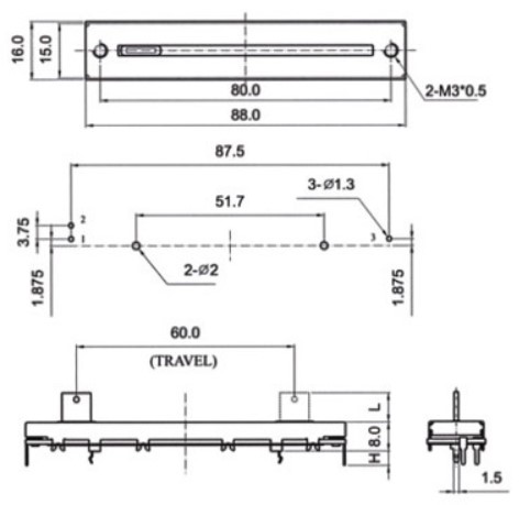 8 8 cm fader dual potentiometer SC-609G A10K B10K B100K handle length 8MMB