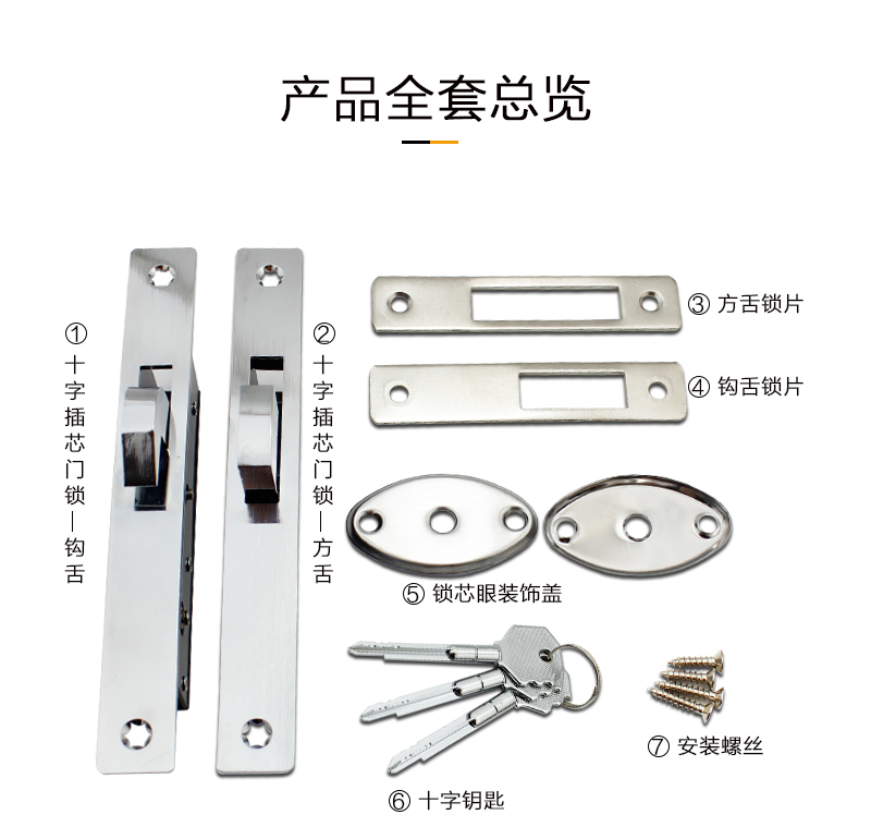: Flat insert core door lock invisible door lock plastic steel door lock cross key concealed door lock push lock hook lock