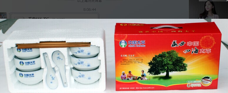 China Taiping Life Insurance Special Edition 6 Only Type of Han Bowl Han Porcelain Bowl Six Bowls Six Spoons Six Chopsticks