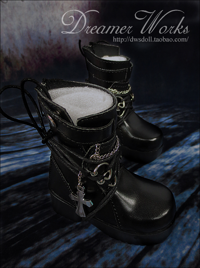 SD BJD 4 points 3 Doll Shoes PUNK Models Cross-Black Strap Short Boots 1 4 1 3-Taobao