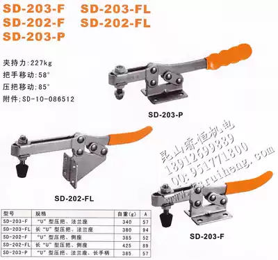Horizontal Fast fixture SD-203F 203FL 203P Clamp 203FSS Elbow clamp Tooling fixture clamp