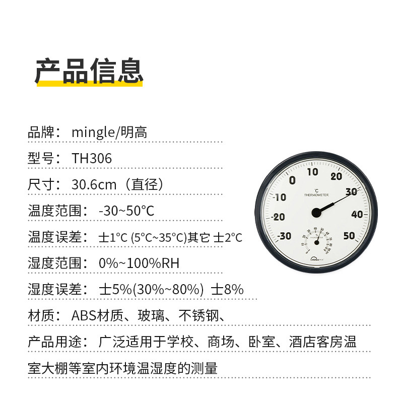 Ming High TH306 Indoor Temperature And Humidity Meter Greenhouse Warehouse Industrial Thermometer Hygrometer High Precision Megatometer 30CM