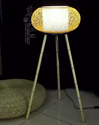 (Holding the moon)Chinese style living room floor lamp Creative bamboo woven floor lamp Retro bamboo lamp personality lamp LTO-40