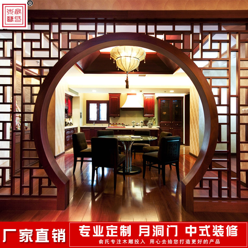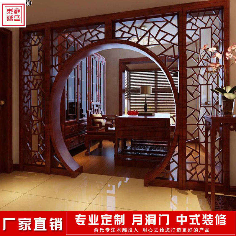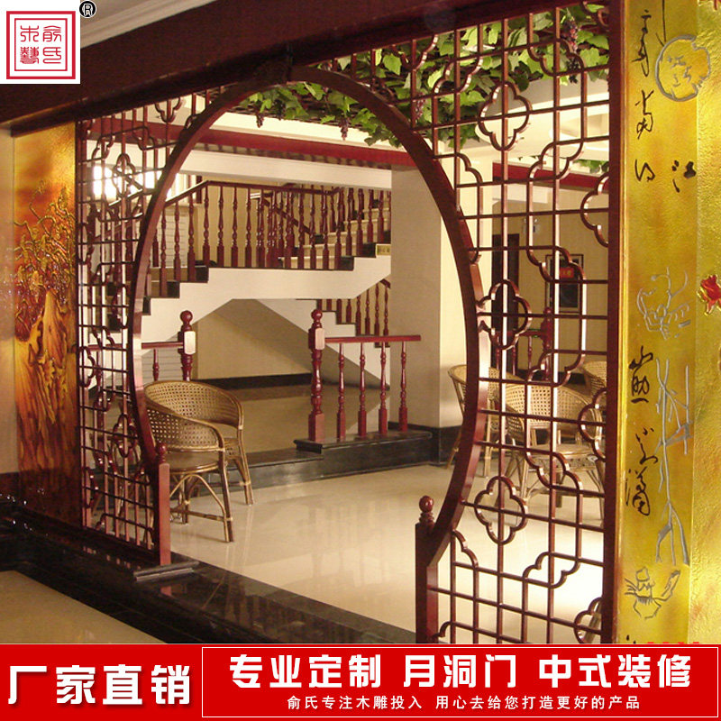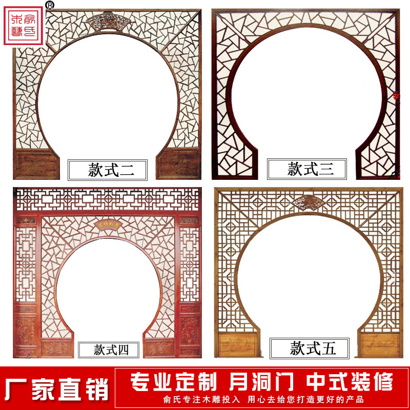 Dongyang wood carving Chinese style entrance hollow lattice decoration partition Antique solid wood doors and windows Moon hole door Moon door customization