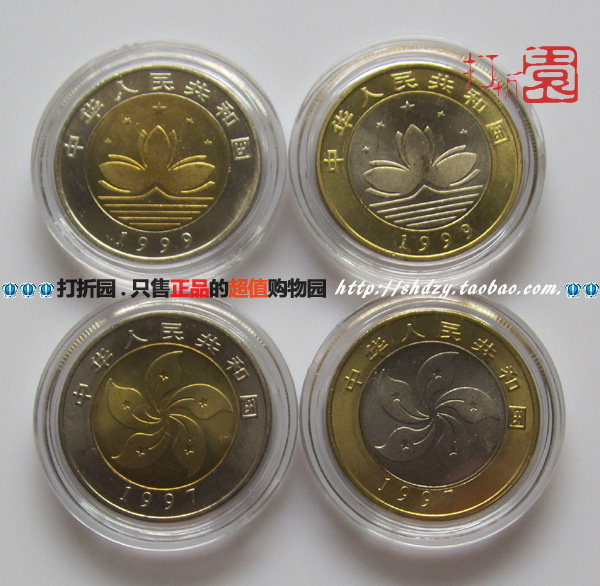 Special offer Hong Kong and Macau return commemorative coins a full set of 4 face value 40 yuan brand new fidelity Wuguan real store