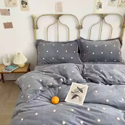 Autumn and winter short velvet European thickened crystal velvet Milk velvet 220*240 quilt cover bed single bedding four-piece set