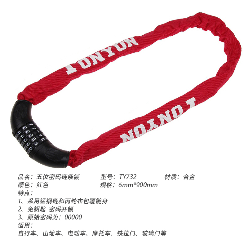 TONYON lock Mountain bike combination lock Electric car chain lock Bicycle combination lock Keyless universal TY732