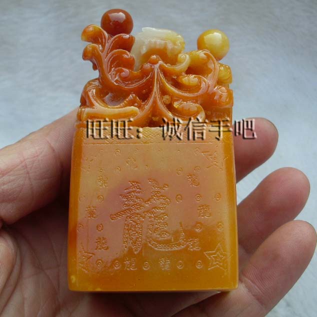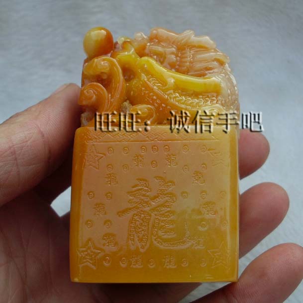 Reyron Inreyron Four stretched out yellow jade Xianglong dragon seal imitation shoushan stone