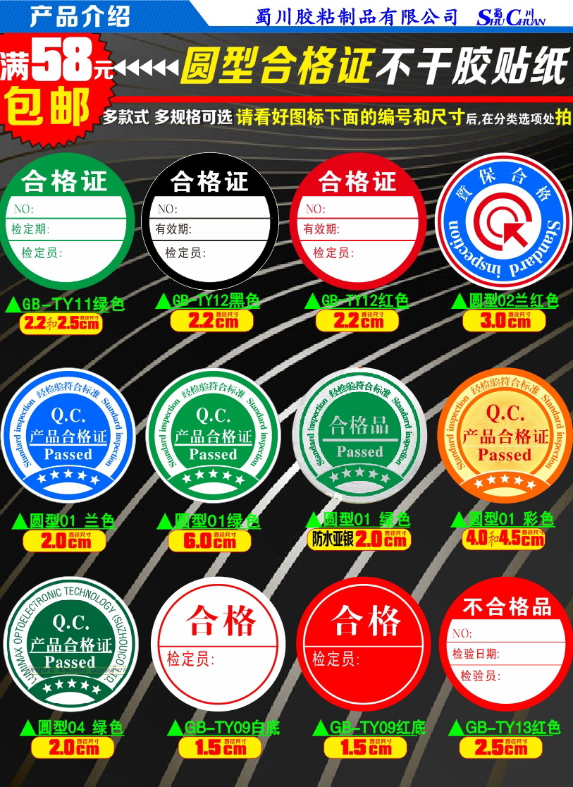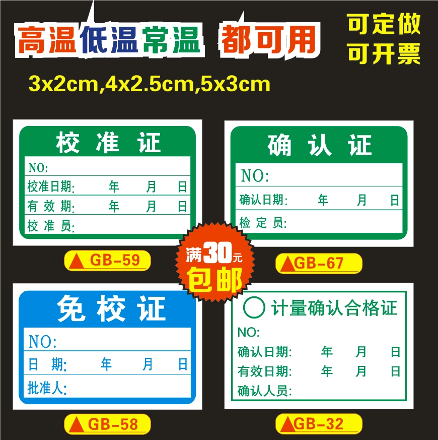 National Label Adhesive Sticker Metering Label Checked Spare Metrology Standard Inbound Acceptance Certificate Three Dimensions Optional