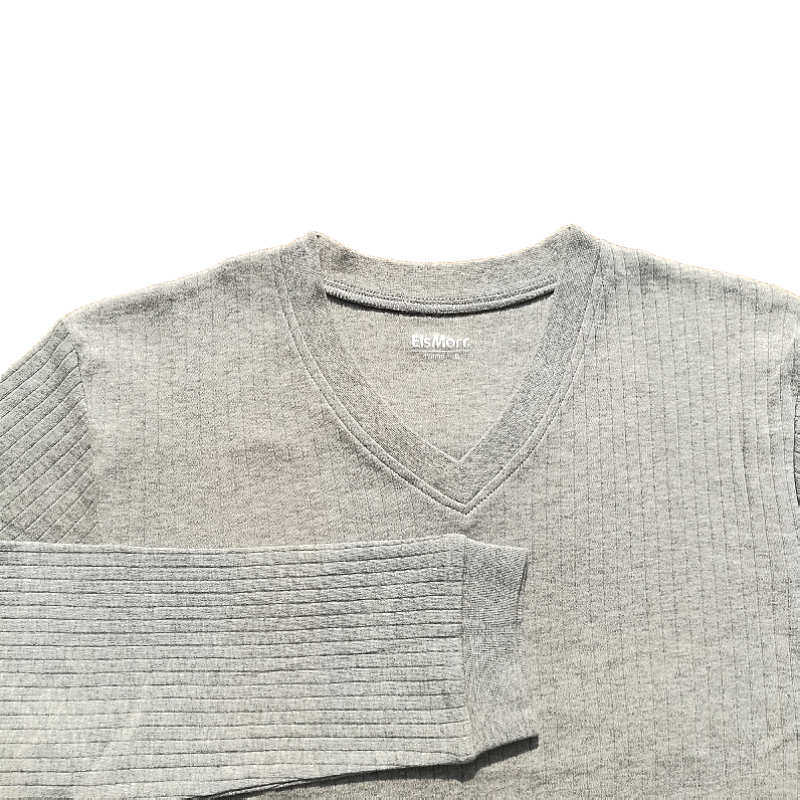 Three-gun Aishmo ELSMORR men's draw strip cotton wool V-neck men's underwear single-piece top shirt solid color lining autumn clothes