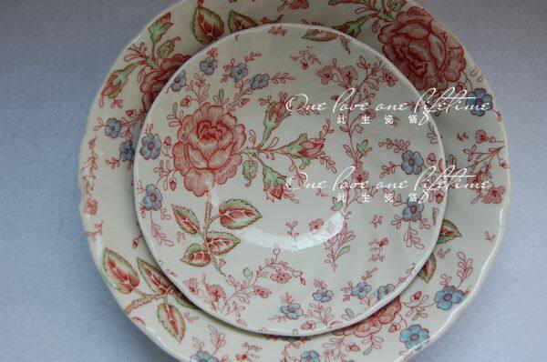 Export original single high temperature underglaze color English afternoon tea Country ceramic Western set Pink rose dish bowl cup
