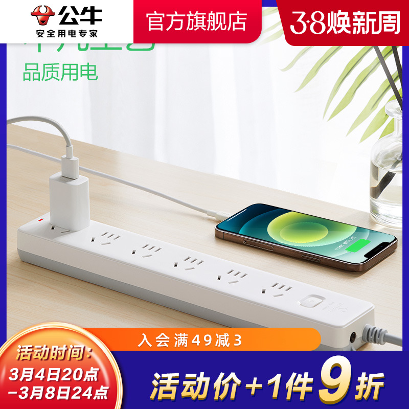 The bull socket plug wiring board wire board overloaded six hole bit 3 m