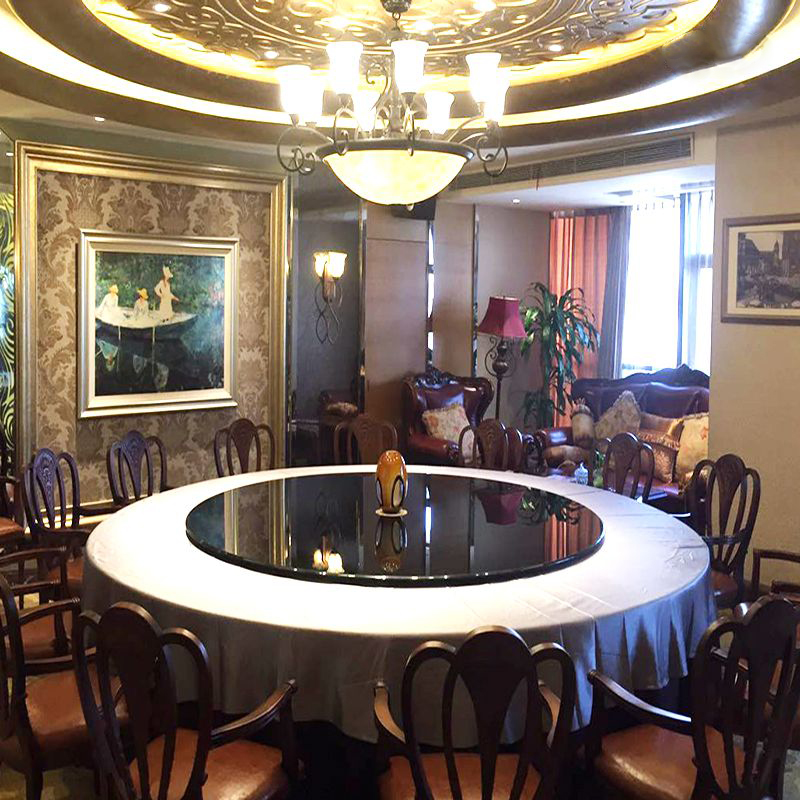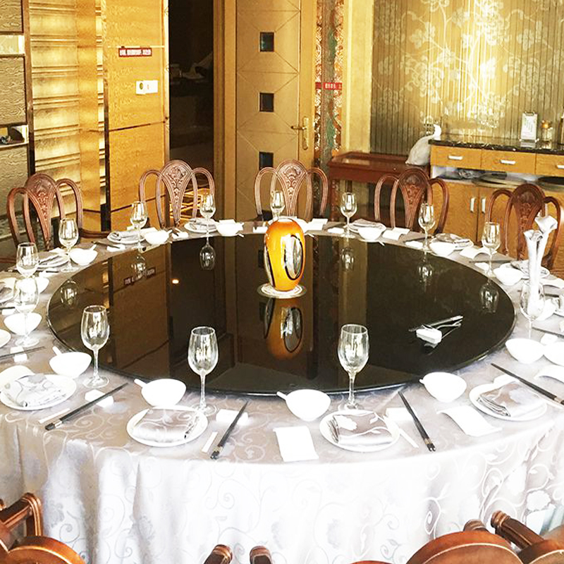 MA65 large size hotel banquet black painted glass dining table turntable black paint turning surface black glass turntable base