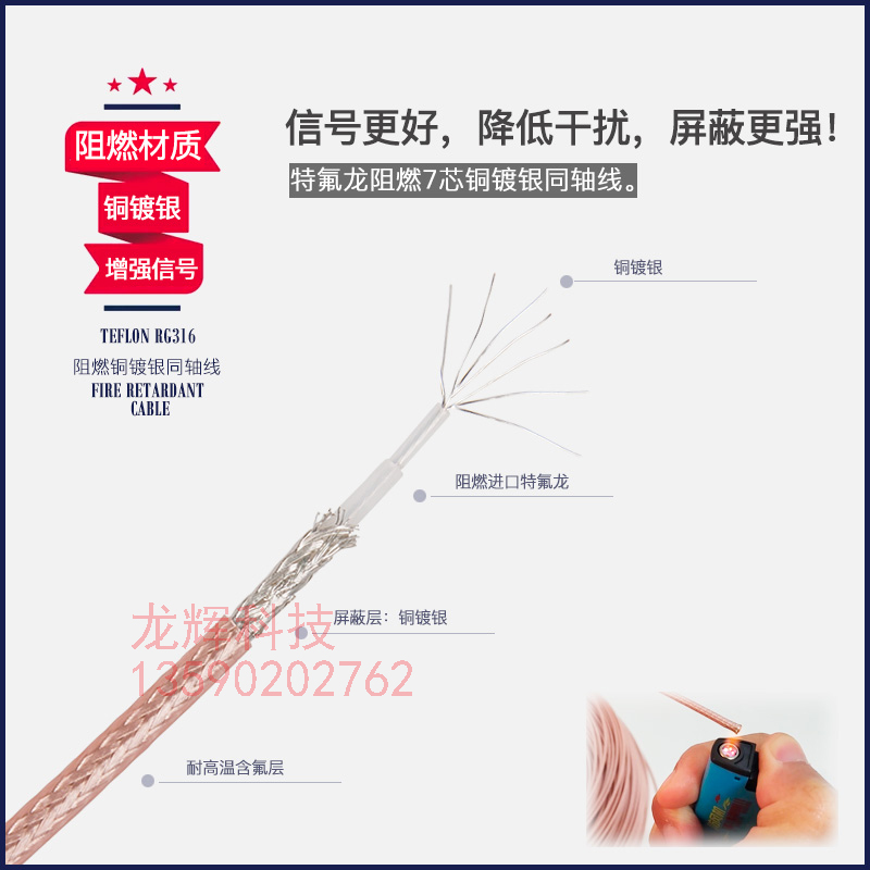 Teflon RG316 Feedback High Temperature Line All copper shielding wire RF signal connection 50-1 5 dual silver wire