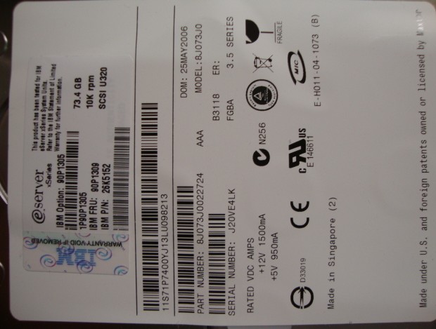 IBM 90P1309 73GB SCSI Ultra 320 10K warranty for one year
