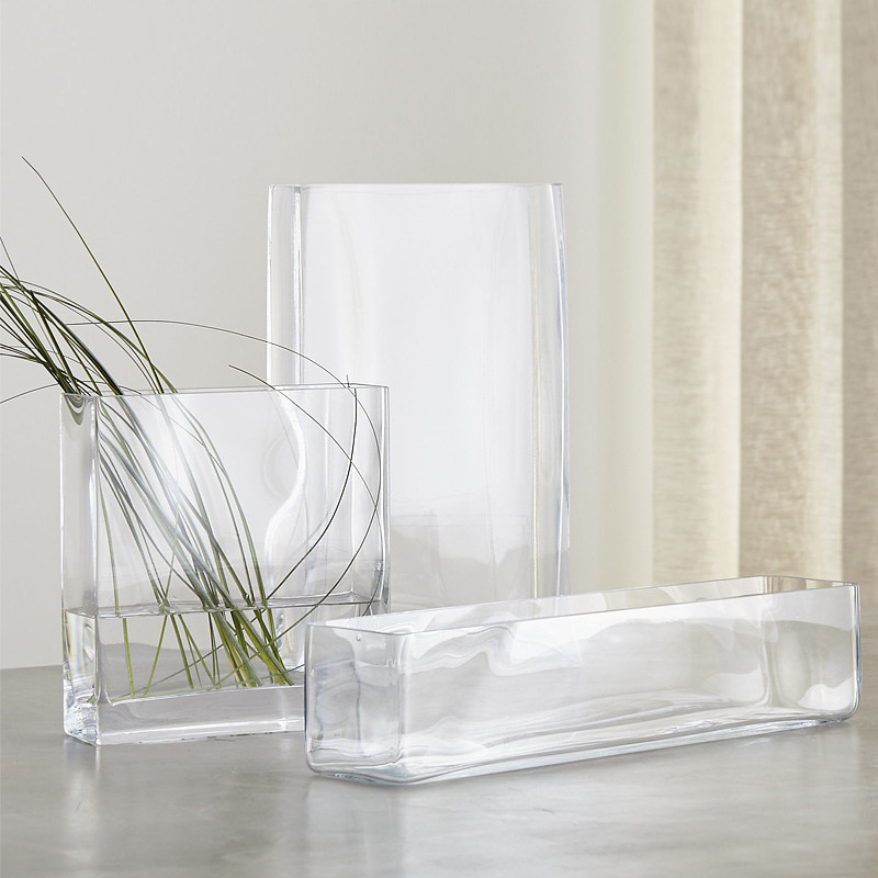 Creative vase Glass hydroponic flower pot Transparent rectangular flat cylinder flat fish tank Simple countertop flower vase