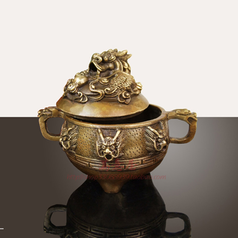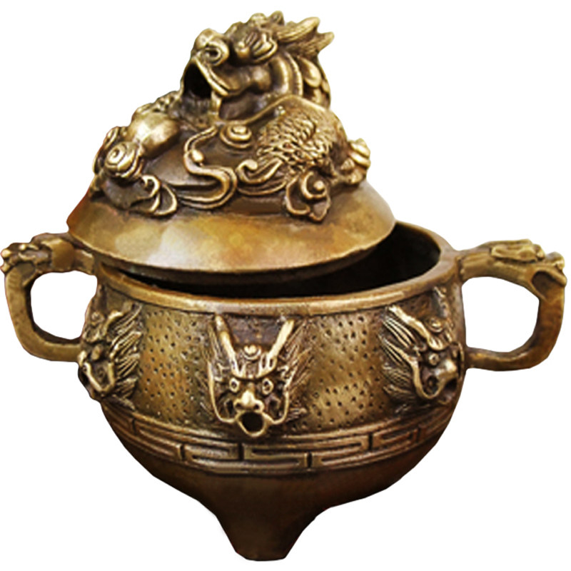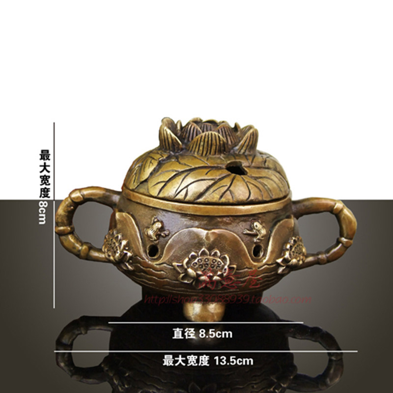 Retro pure copper lotus faucet incense burner home indoor sandalwood incense burner soothes the nerves and worships three-legged tripod Buddha supplies