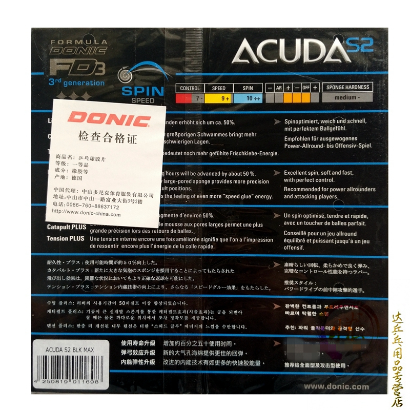 Tenda table tennis Donick S2 Donic ACUDA S2 table tennis anti-glue rubber leather 12082