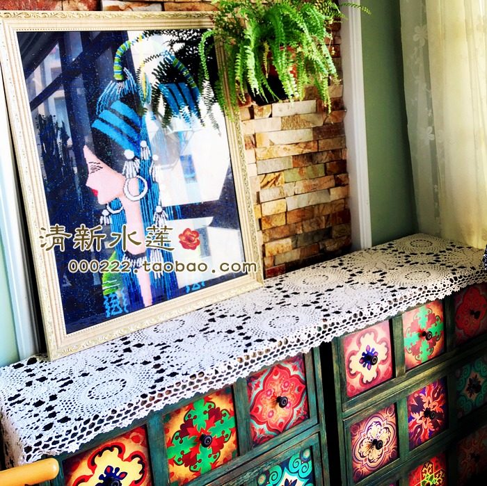 Hand Crochet Hook Flower Nordic Style Nostalgia Vinyre Pure Cotton Lace Hollow Woven Table Flag Five Bucket Closet Guaib White Rice