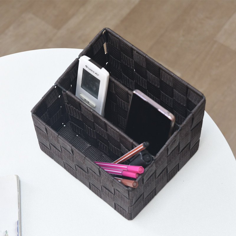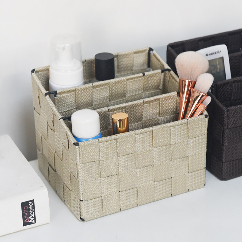 Desktop nylon fabric three-grid remote control storage box cosmetic storage basket storage basket separate basket storage basket