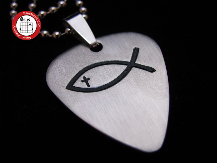 Watson musical instrument necklace PICKLACE metal punk titanium steel Ichthys fish pick necklace can be worn