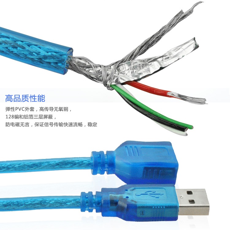 5 m blue USB extension cord transparent wire extension signal wire USB standard 2 0 data wire copper core with magnetic ring