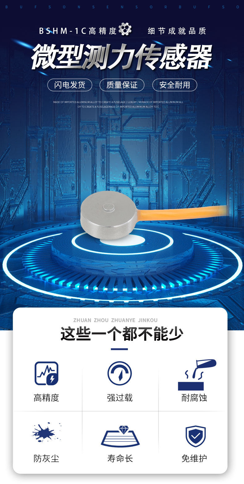 Miniature gravity press force sensor Monitor Membrane high frequency fast pressure sensor module Collision force