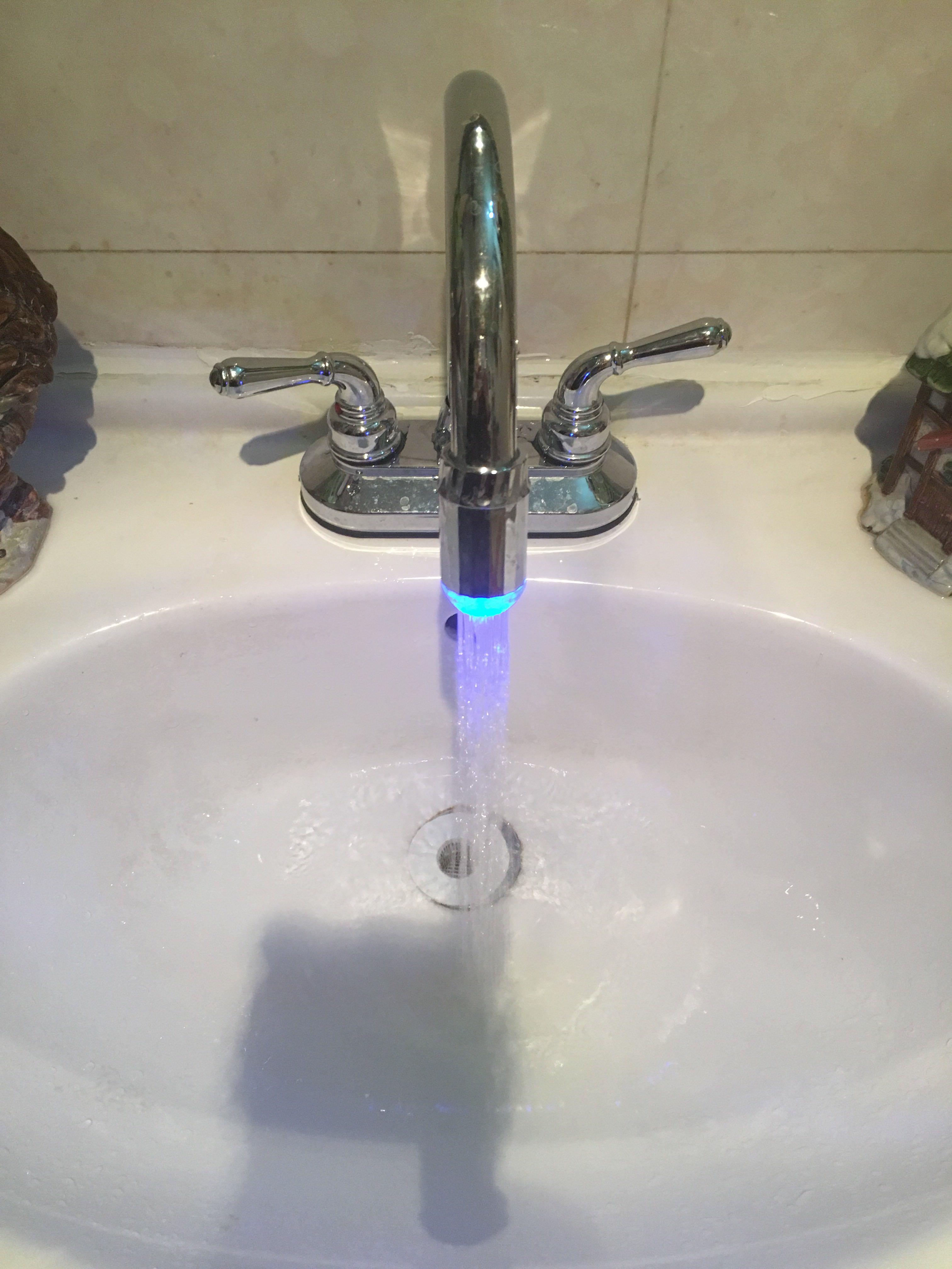 Shopkeepers try automatic color-changing faucet lights Temperature-controlled tri-color glowing faucets hydroelectric power generation