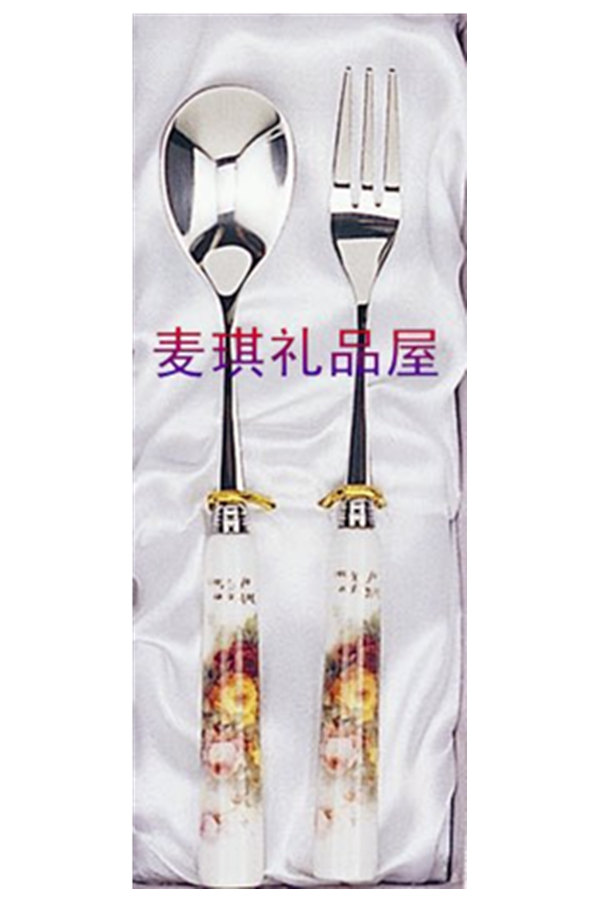 Korea Imports Kitchen Cutlery CUTLERY TPMATE ITALIAN ROSE CERAMIC HANDLE COFFEE SWEET SPOONS FORK 2P GIFT BOX