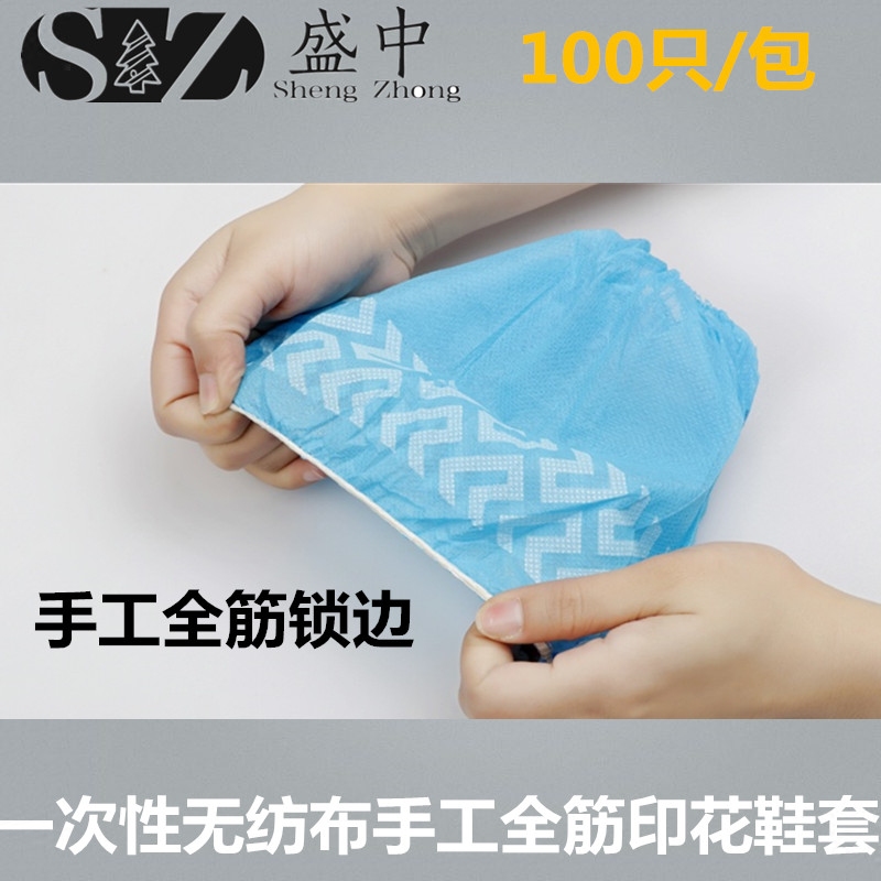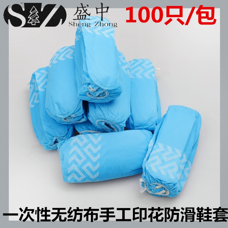 Disposable shoe cover thickened non-woven shoe cover Non-woven handmade full-rib printing non-slip shoe cover 1000pcs