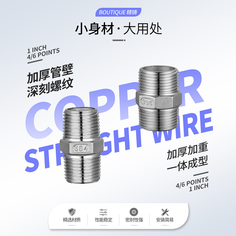 Copper wire directly thickens the wire joint stainless steel interface 4 minutes 6 inch 1 inch water pipe extended accessories
