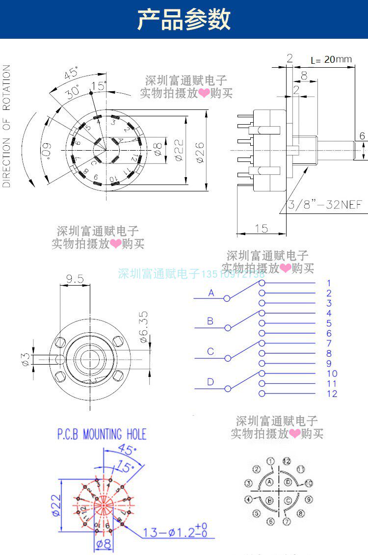 Hh Bench Production Full Plastic Band Switch Rotation 4 Knives 3 Blocking 20 Shaft Can Self-Regulate Gear Environmental Protection High Temperature Resistant