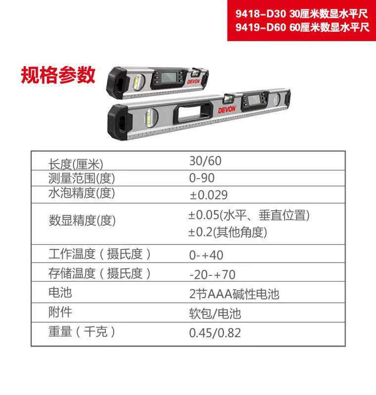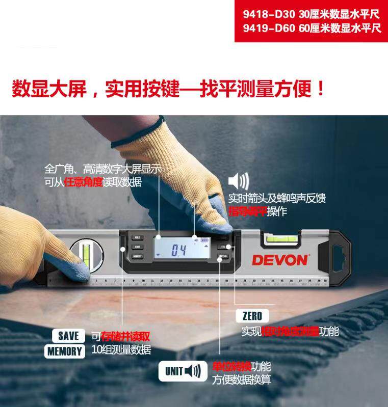 Great DEVON digital display horizontal ruler 9418 9419 Electronic horizontal ruler number of display gradiometers Number of display angle angle ruler