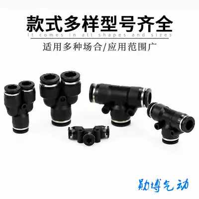 Pneumatic air pipe quick plug and equal diameter tee type PE10 12 16 black boutique quick connector Y type PY4 6 8