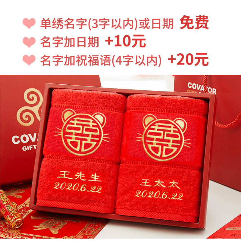 White MrMrs pure cotton towel 2 strips (simple case without gift box) Large red MrMrs pure cotton towels 2 strips (auspicious gift boxed) Large red MrMrs pure cotton towels 2 strips (simple fit