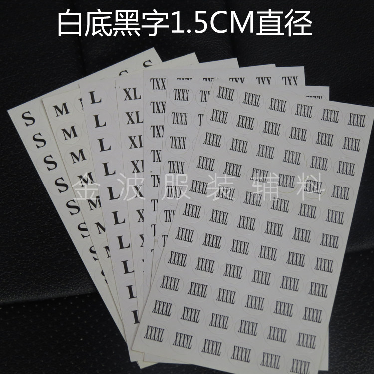 1 5cm white background with black characters (XS) 1 5cm white background with black characters (S) 1 5cm white background with black characters (M) 1 5cm white background with black characters (L) 1 5cm white background with black characters (X