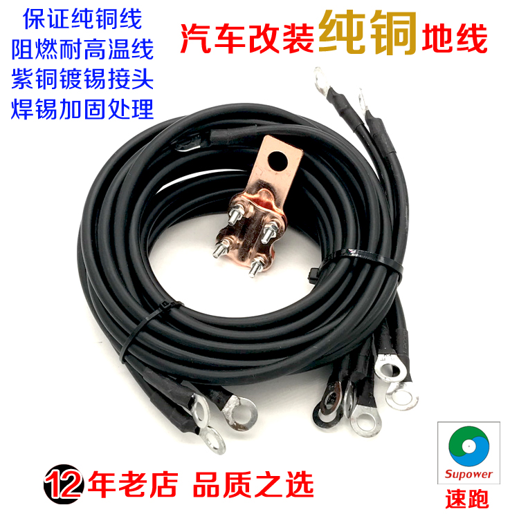 Pure copper car modification reinforced grounding wire Negative electrode iron wire High temperature flame retardant water temperature buster rectifier partner