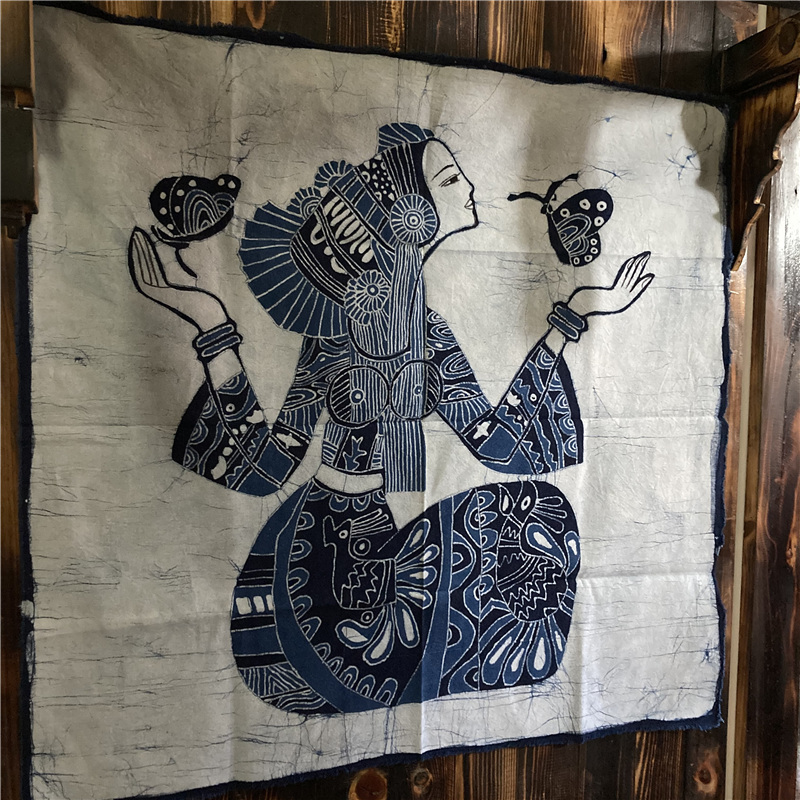Foreign affairs gift Yunnan special hand-painted batik painting wall hanging ethnic style parent-child home restaurant inn decoration cover cloth