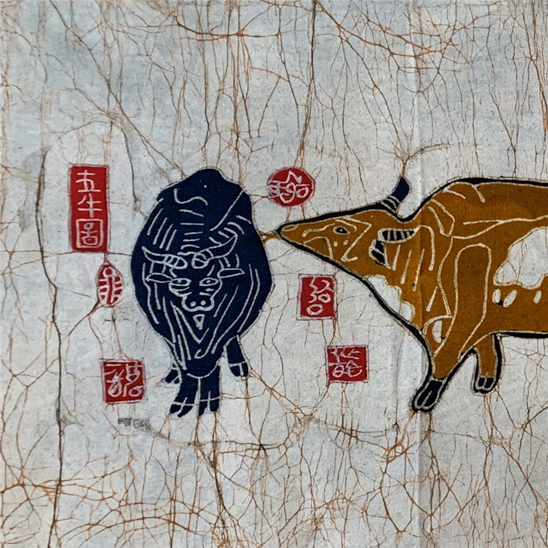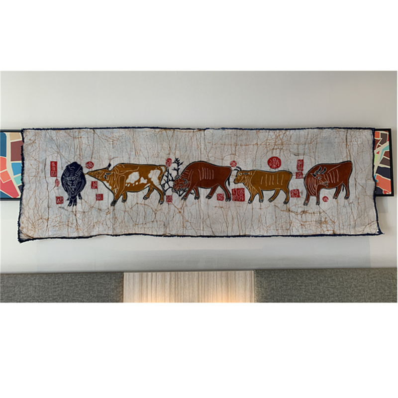 Wu Niu Tu Yunnan characteristics hand-painted batik cloth Home dining room bar decoration wall stickers blue dye national painting core