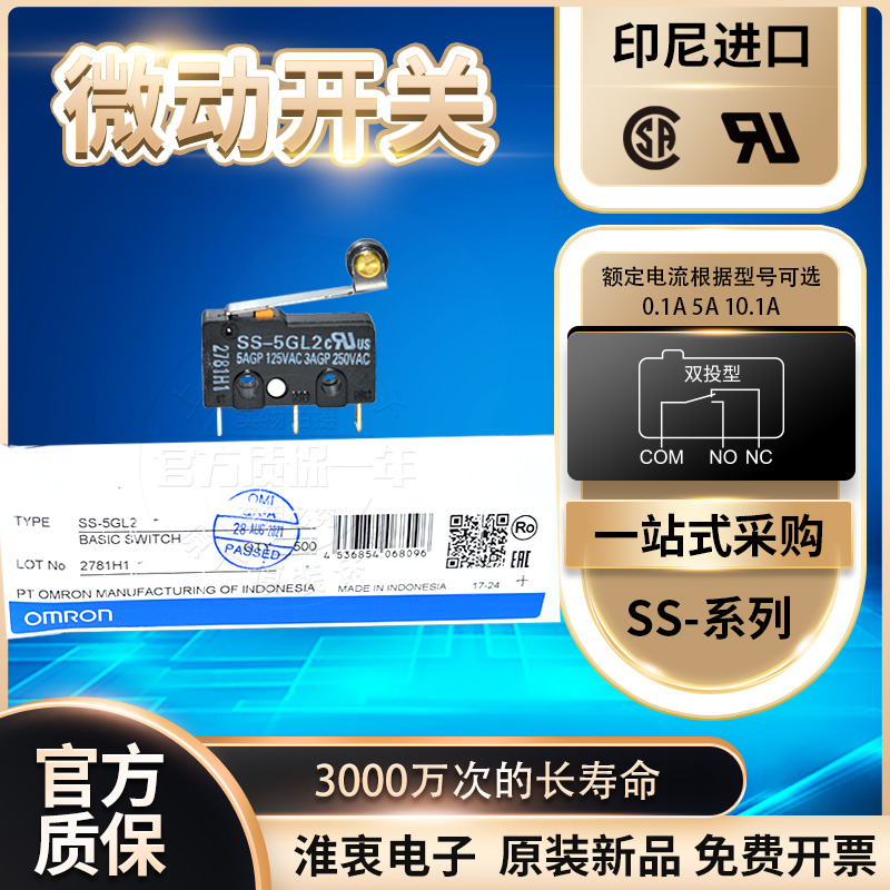 Omron OMRON stroke micro switch SS-5GL13 curved handle one open one close 5A250VAC