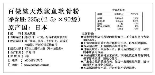 Japan direct mail Baiao shark cartilage powder saw peak tooth shark shark supplement meniscus cartilage nutrition gift 6 boxes