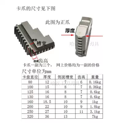 With global universal chuck three-jaw positive and negative jaws claw feet 80 100 125 130 160 200 250 320