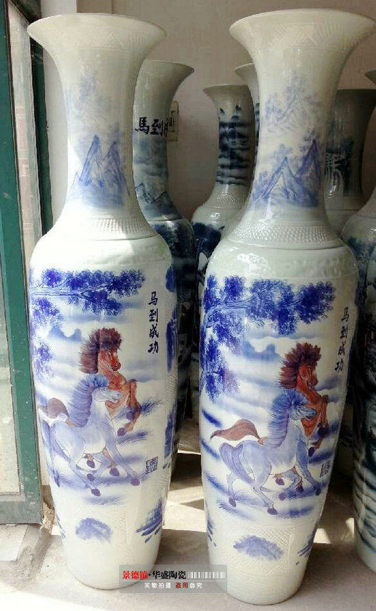 Jingdezhen ceramics floor-to-ceiling large vase all hand-painted blue and white horse to success 18 meters