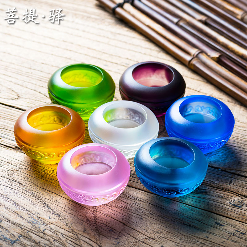 Boutique Seven Colors Glazed auspicious Lotus Thickened Wax Candleholder Ghee oil lamp for a lamp stand Bodhi