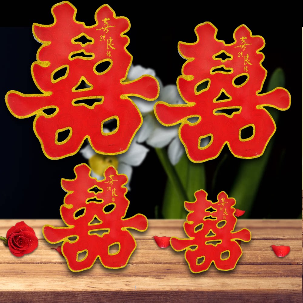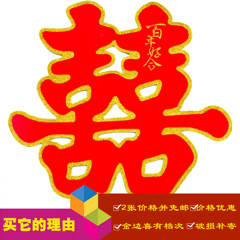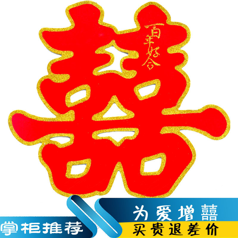 Wedding supplies paper-cut happy words paste large and small size gold powder wall paste door wedding room decoration