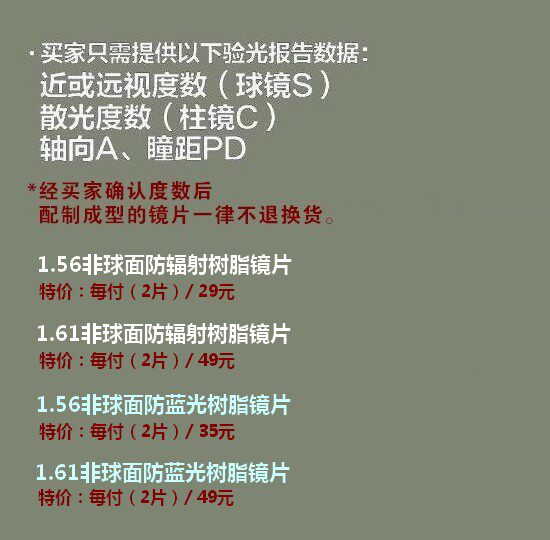Aspherical (astigmatism) aspherical anti-blue light (no astigmatism)