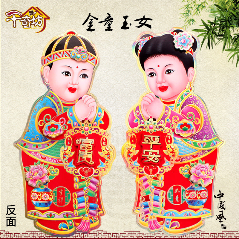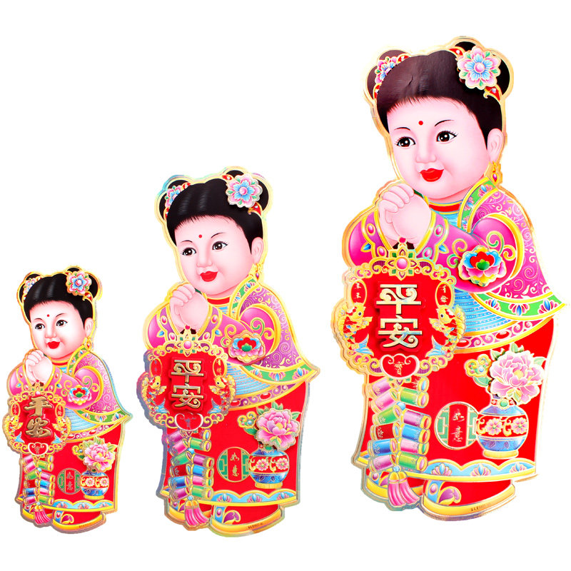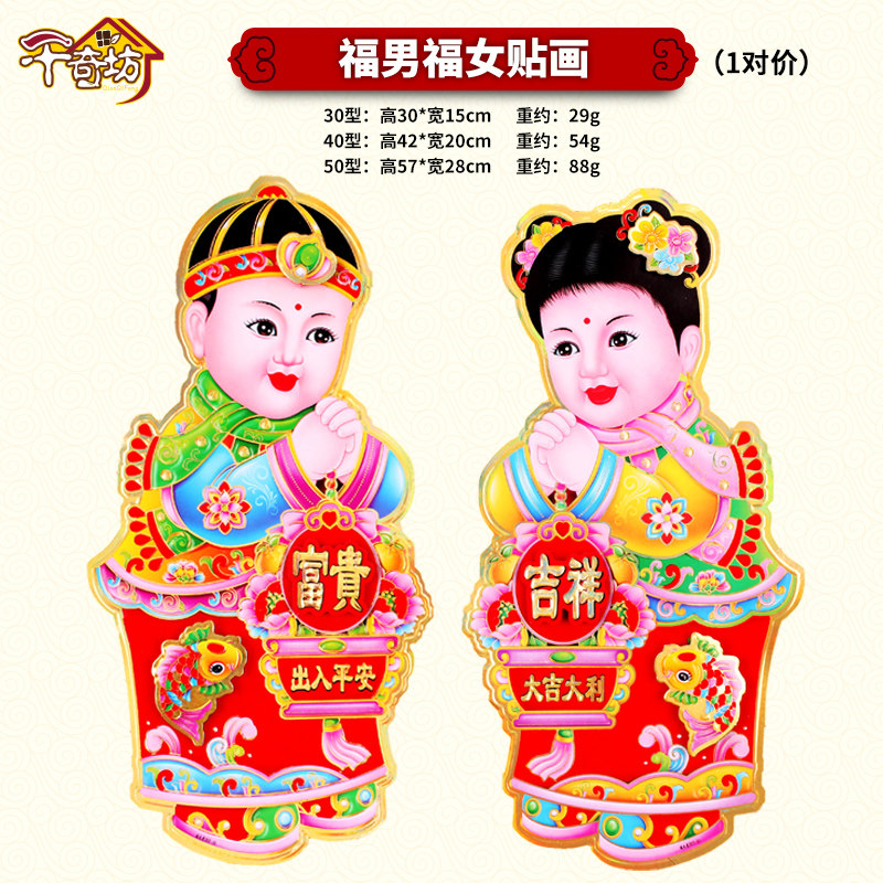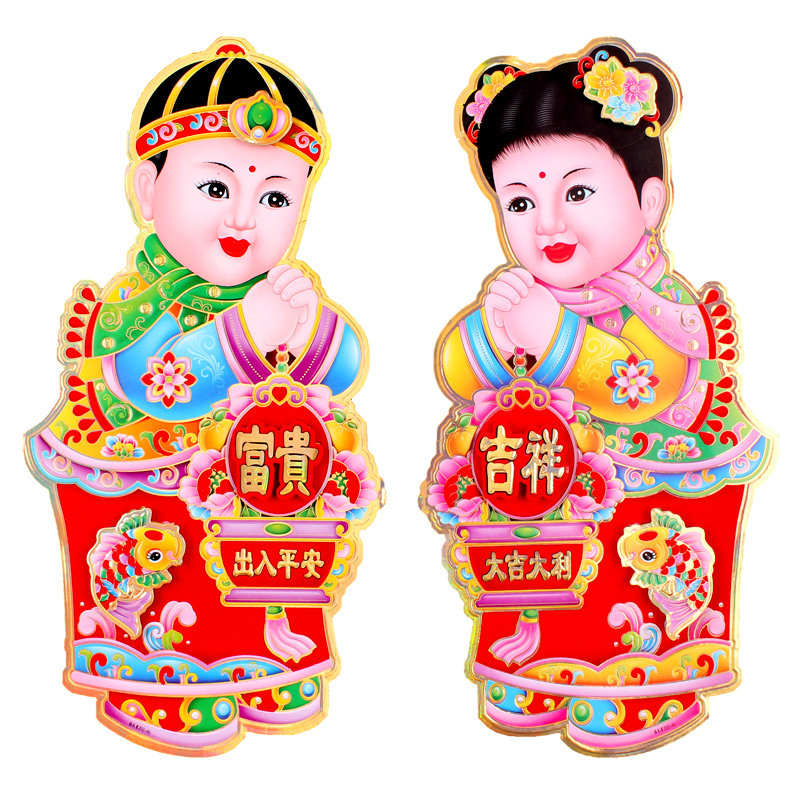 Qianqifang 2022 Year of the Tiger New Year Decoration Sticker Golden Boy Jade Girl Fuwa Fu Character Sticker God of Wealth Spring Festival Door Sticker
