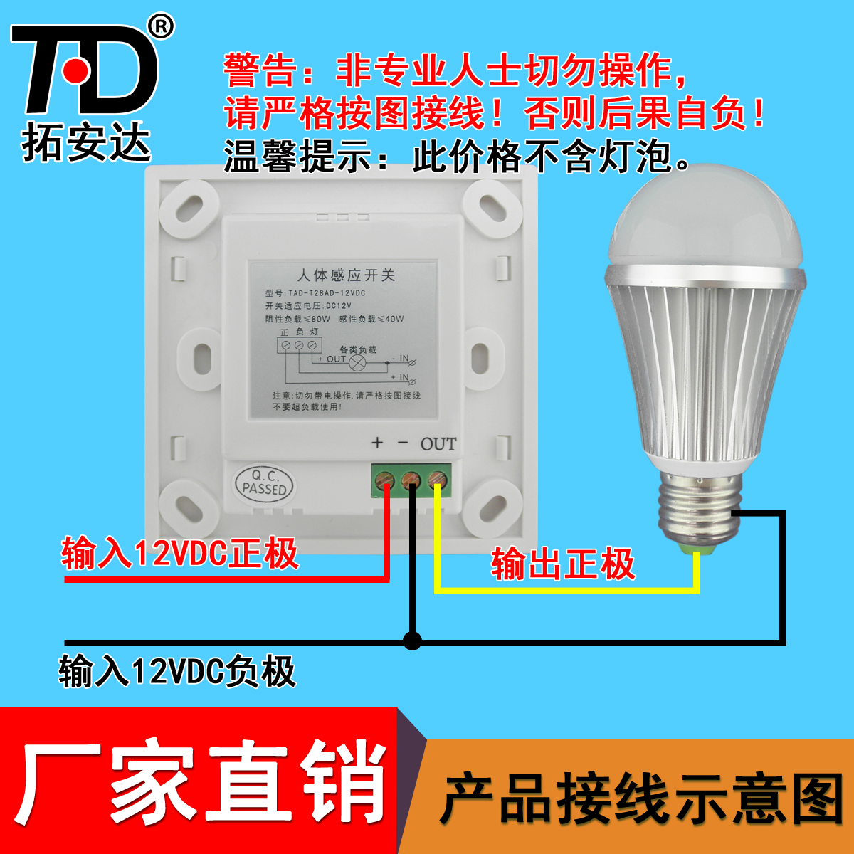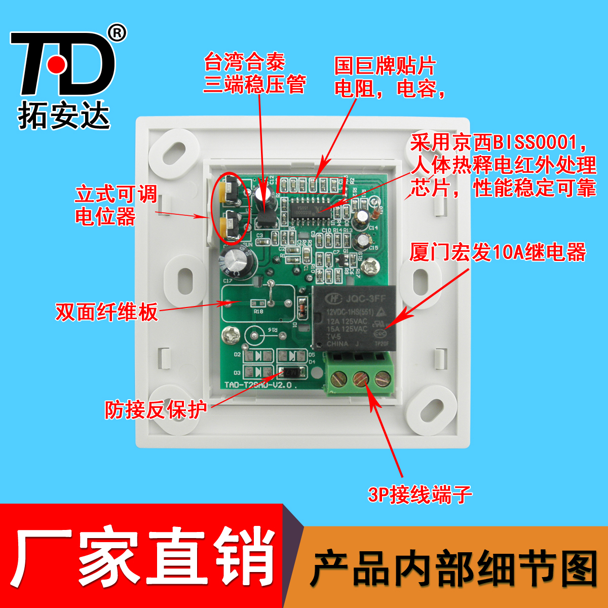 86 panel 12V human body sensor switch Three-wire relay can be connected to LED light delay sensitivity adjustable sensor